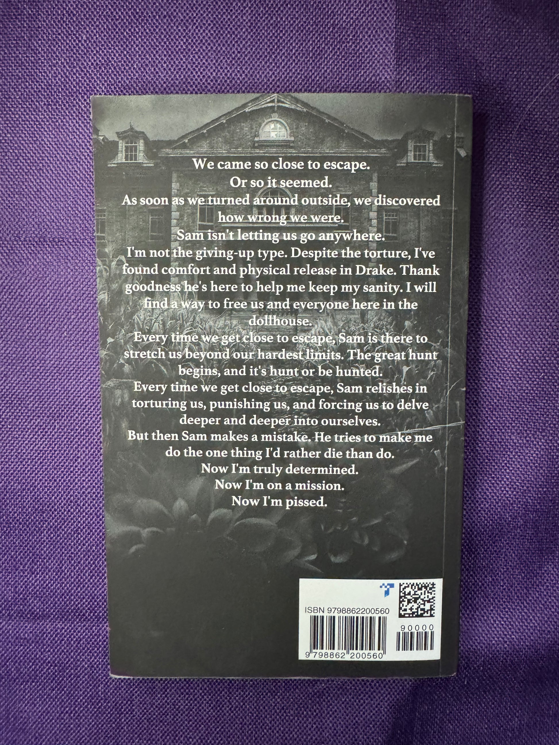 I'm not the giving-up type. Despite the torture, I've found comfort and physical release in Drake. Thank goodness he's here to help me keep my sanity. I will find a way to free us and everyone here in the dollhouse.